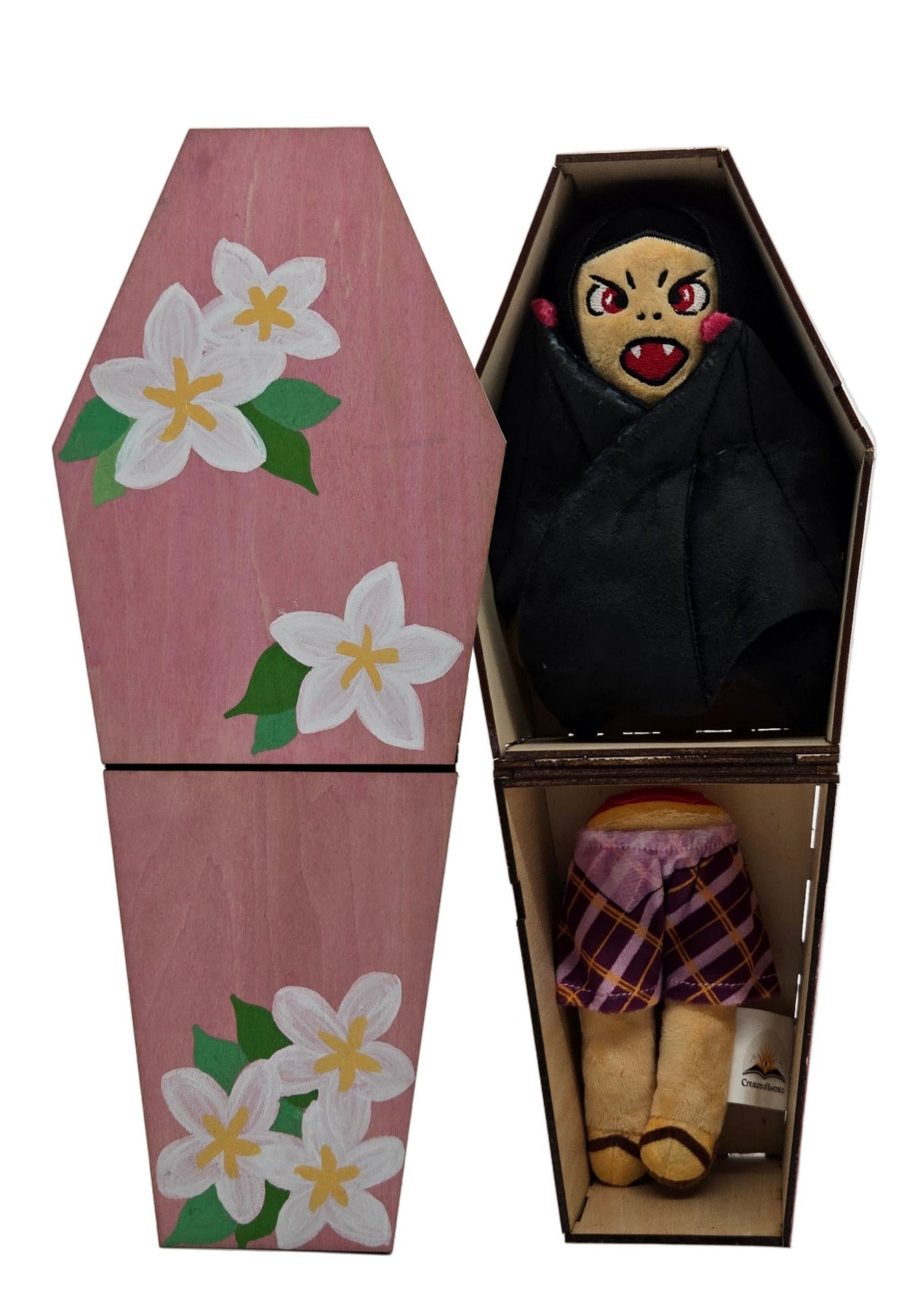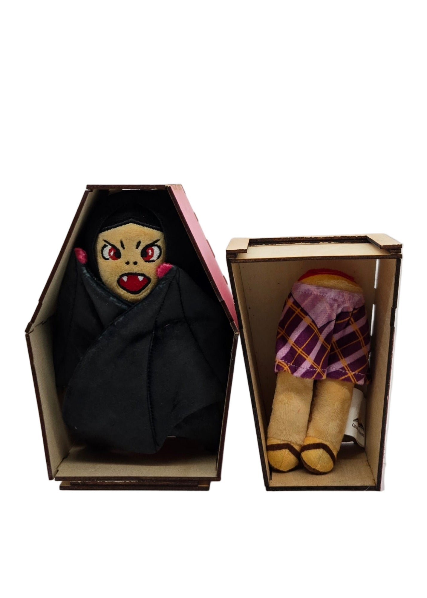 Maganda the Manananggal was considered the most beautiful in the village...and possibly the first manananggal. Her coffin is able to be separated and re-attached by sliding the top and bottom pieces together. Display Maganda in a full coffin (while still keeping her famous split visible), or separate the coffin boxes to really show off her lore.