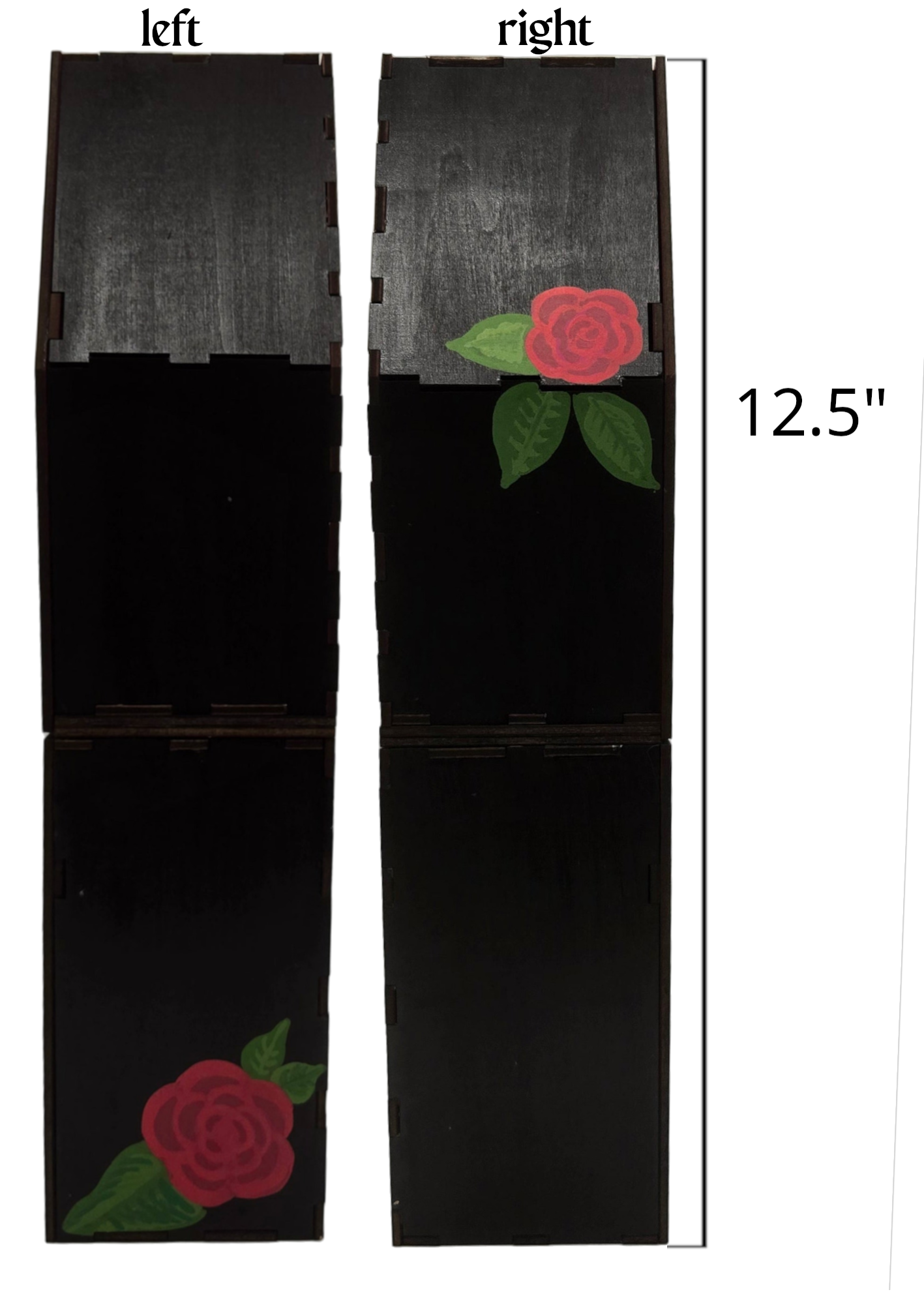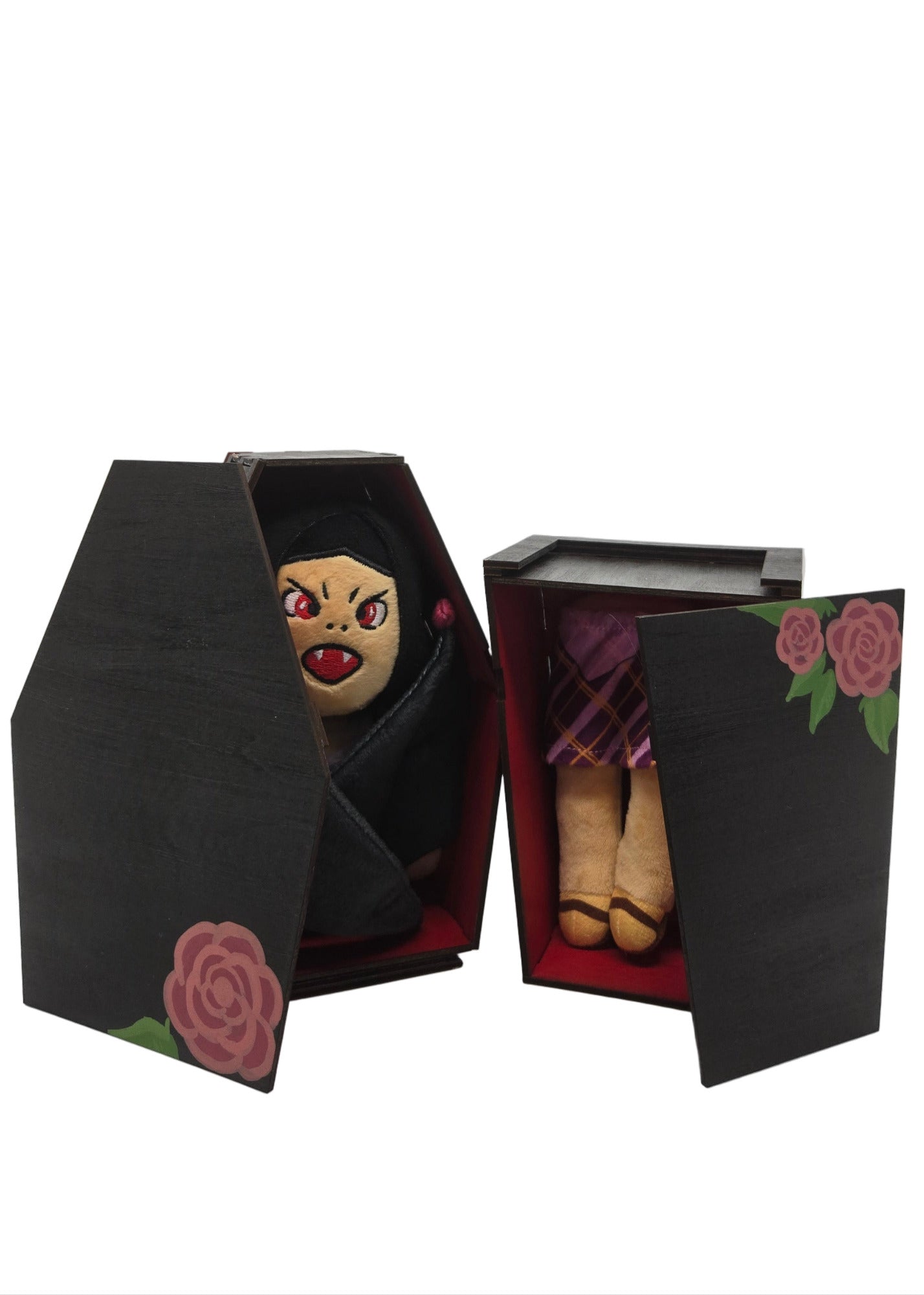 The coffin box is made from wood and handpainted. There may be slight imperfections due to the handmade nature of the display case.
